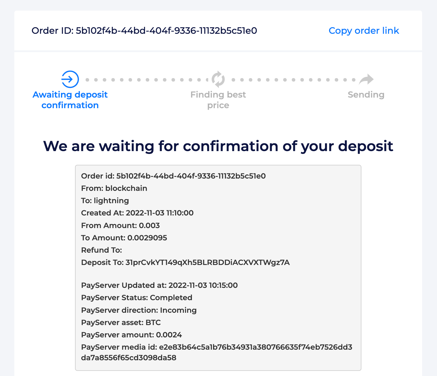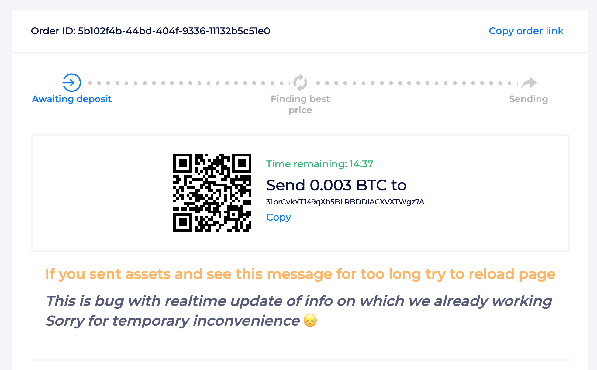 PROTIP if you’re using a custodial wallet there might be fees related to the transaction. If the amount of BTC sent is less than the one expected the overall thing will halt and you’ll have to contact support. Make sure the right amount will be received.