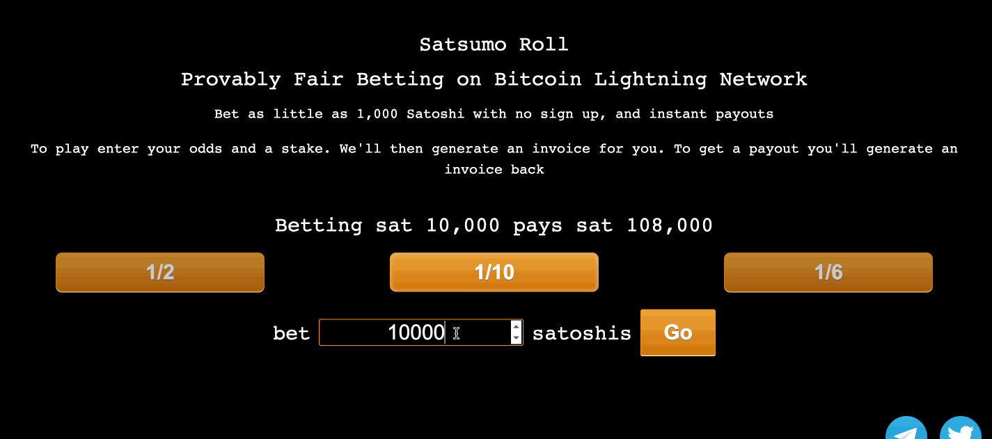 I recently authored a small app called Satsumo which allows you to essentially toss a coin and potentially receive a payout.